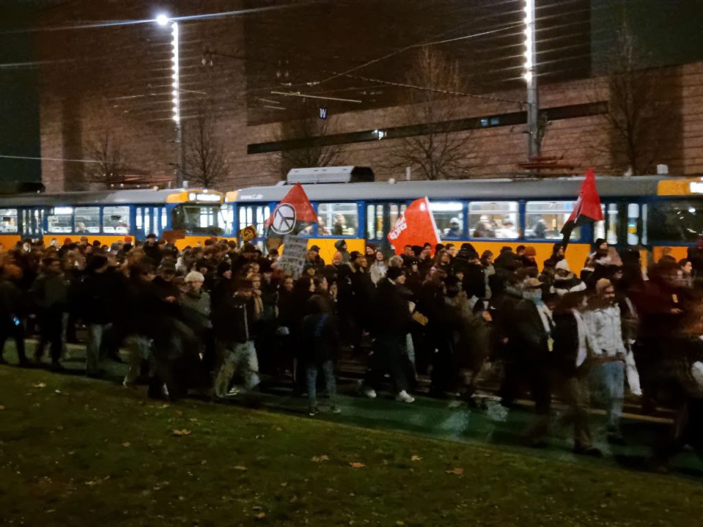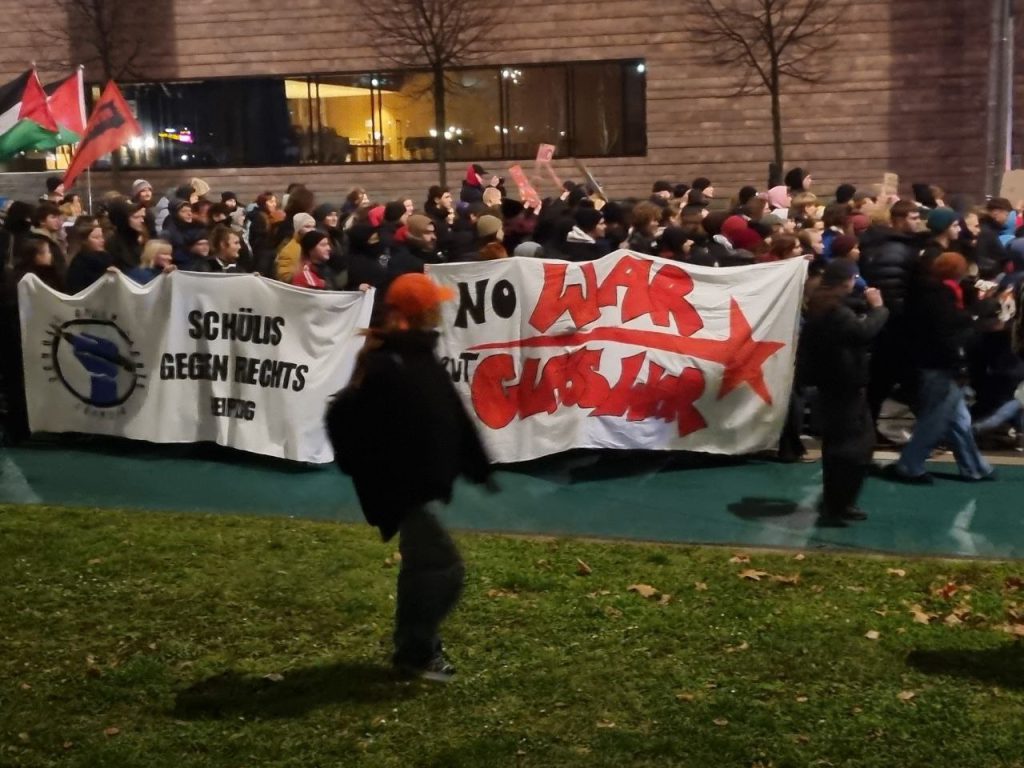 Beeindruckend war die klare Haltung der jungen Leute, ihre klare Einordnung der Politik in das aktuelle Weltgeschehen. Sprechchöre von „Hoch die internationale Solidarität“ über „Streik in der Schule, Streik in der Fabrik – das ist unsre Antwort auf eure Politik!“ bis hin zu „Deutsche Waffen, deutsches Geld morden mit in aller Welt“ und viele andere mehr waren zu hören.