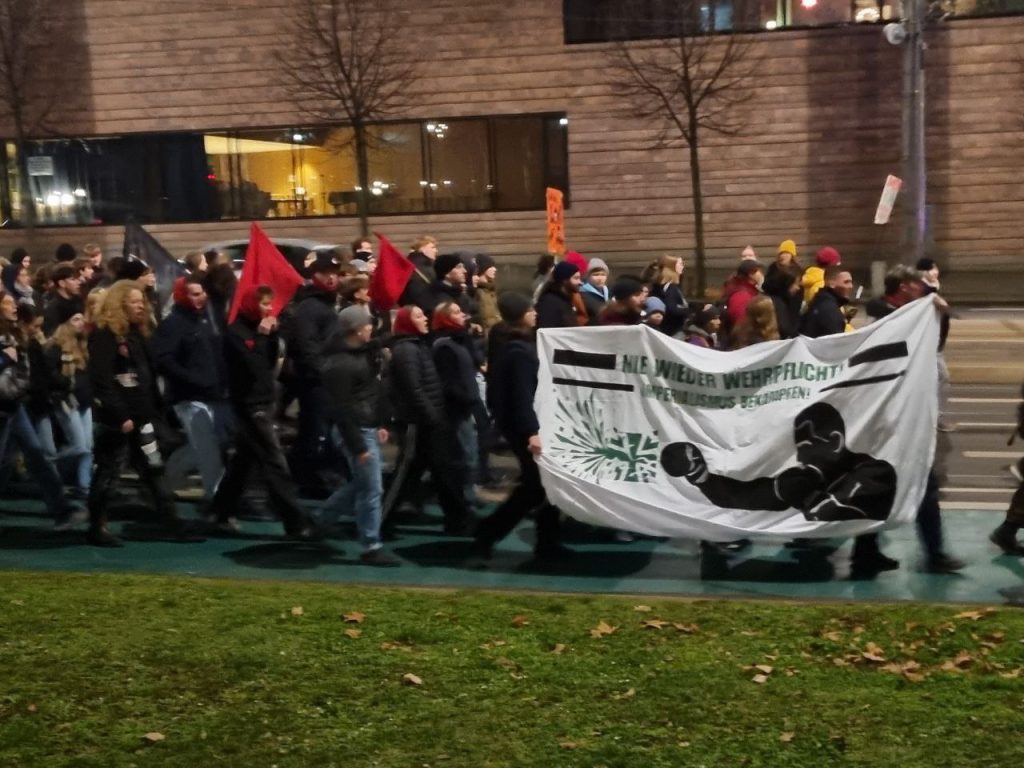 Allein in Leipzig demonstrierten 2.000 überwiegend junge Menschen am Abend gegen das neue Wehrdienstgesetz.