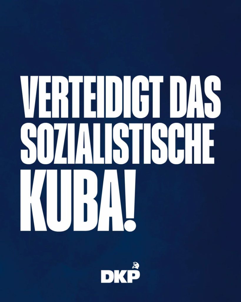 Angesichts der massiven Angriffe und Drohungen durch den US-Imperialismus ist die Deutsche Kommunistische Partei (DKP) unverbrüchlich solidarisch mit dem Volk und der Regierung Kubas. Schon die Entführung des venezolanischen Präsidenten Maduro und seiner Frau durch das US-Militär war eine deutliche Drohung gegen das sozialistische Kuba. Diese Drohung wird nun vom US-Imperialismus in die Tat umgesetzt. Die US-Regierung hat angekündigt, eine vollständige Blockade durchzusetzen, um die Lieferung von Treibstoff nach Kuba zu verhindern. In einem Dekret ermächtigen die USA sich selbst, auf Waren aus allen Ländern, die direkt oder indirekt an Öllieferungen nach Kuba beteiligt sind, Strafzölle zu erheben. Auch eine Seeblockade wird geplant. Der US-Präsident Donald Trump begründet dies mit einer angeblichen „außergewöhnlichen Bedrohung“ der Sicherheit der USA durch Kuba. Die DKP weist diese absurden Vorwürfe deutlich zurück. Die friedliche Zusammenarbeit Kubas mit den BRICS-Partnerländern Russland, China und Iran bedroht niemanden. Die Behauptung, dass Kuba den internationalen Terrorismus unterstütze, ist ohne jede Substanz.