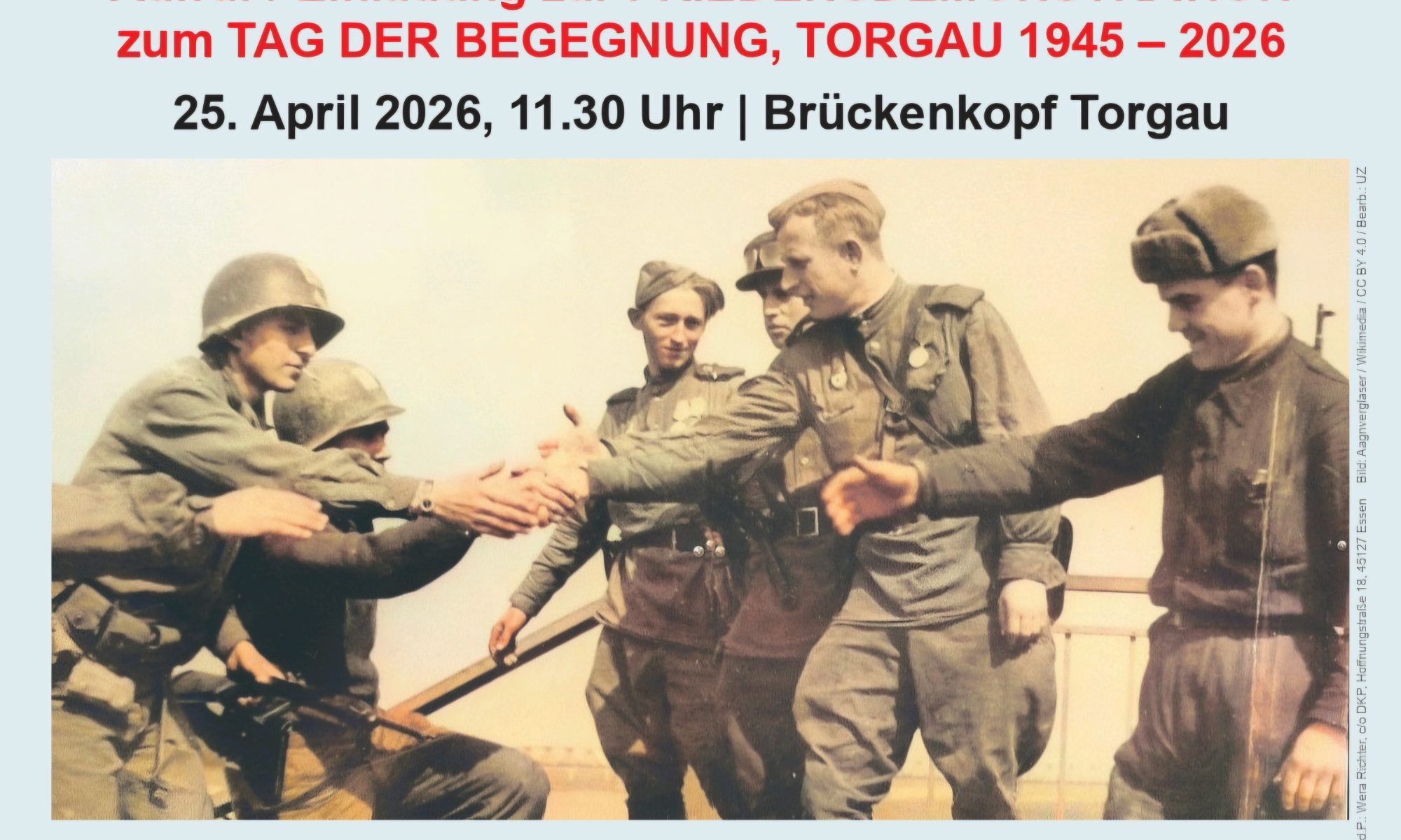 AUFRUF/ EINLADUNG zur Friedensdemonstration zum TAG DER BEGEGNUNG, TORGAU 1945-2026